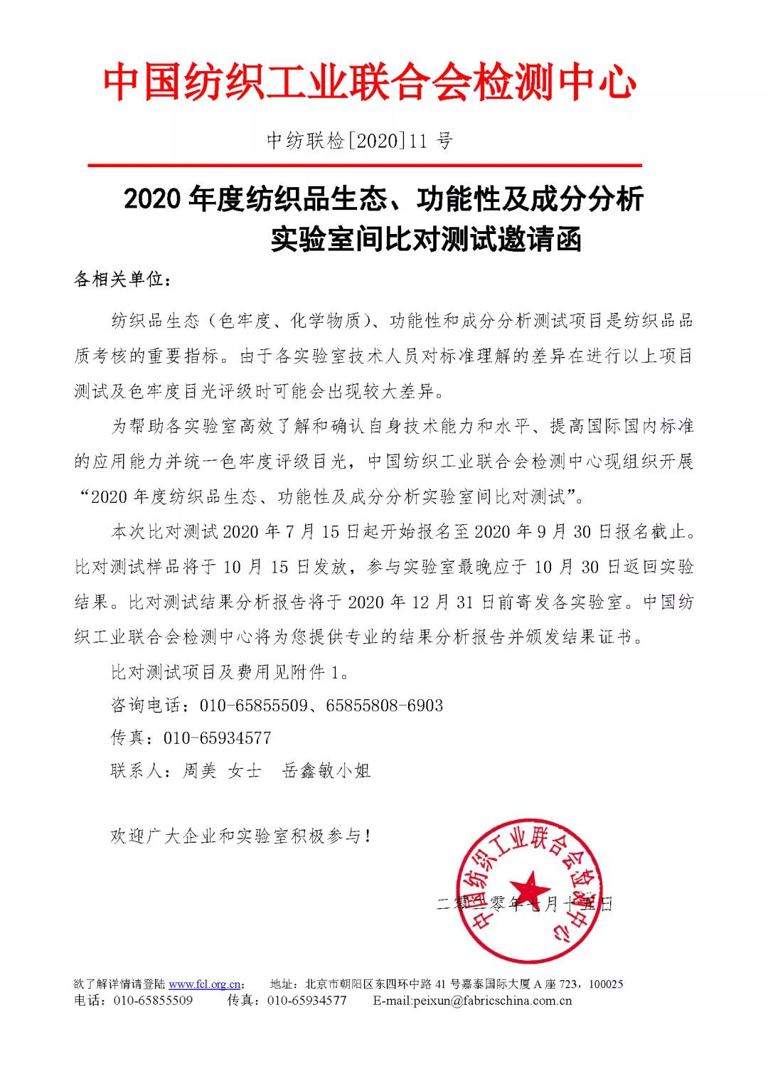 比對(duì)│2020年度紡織品生態(tài)、功能性及成分分析實(shí)驗(yàn)室間比對(duì)測(cè)試邀請(qǐng)函